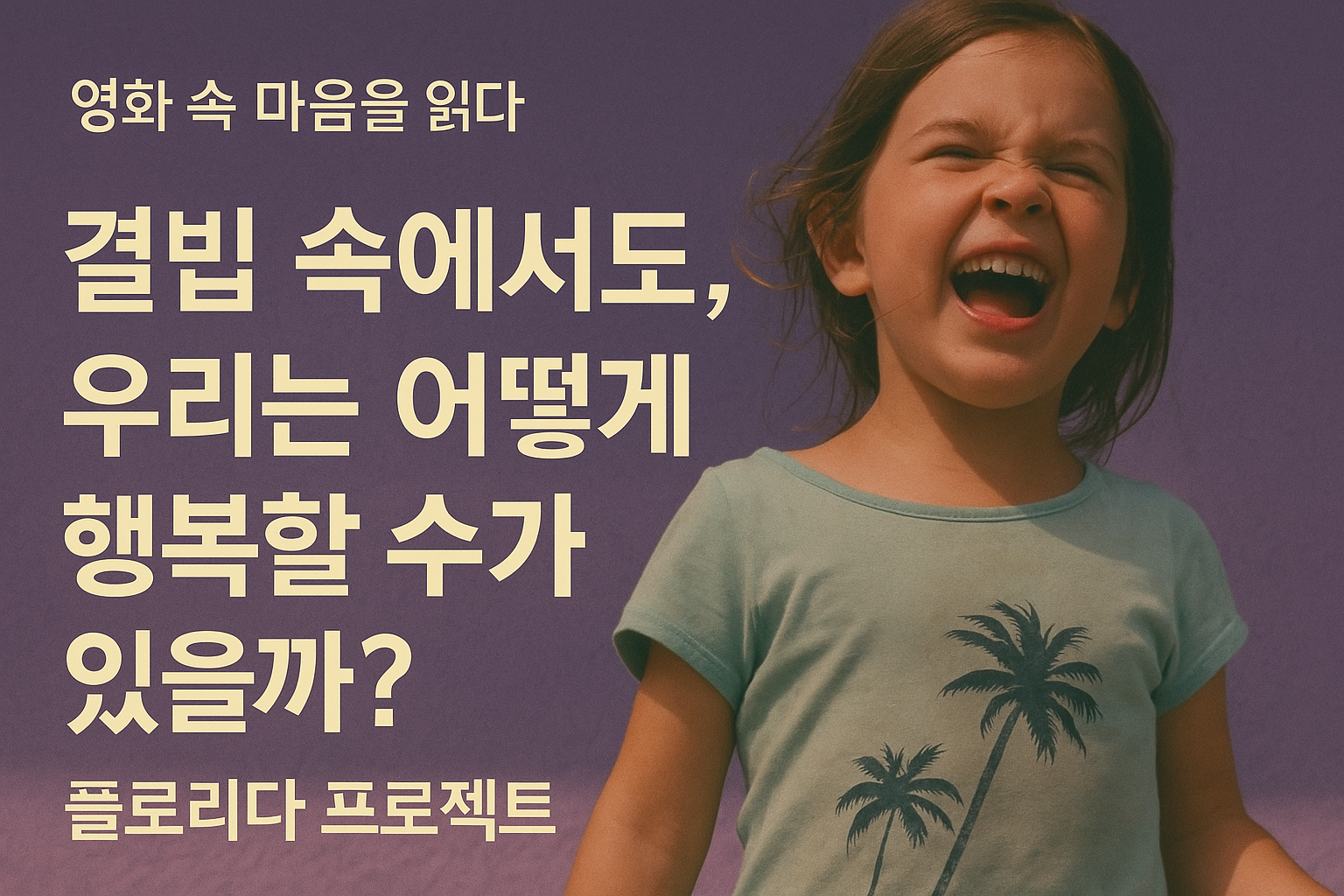 🎭 영화 속 마음을 읽다"결핍 속에서도, 우리는 어떻게 행복할 수 있을까?"가진 것 하나 없는데, 누구보다 자유롭고 행복해 보이는 아이들.그 아이들이 웃고 떠드는 세상은 어떤 모습일까? “우리가 세상에서 가장 좋아하는 장소는, 우리가 가장 자주 웃는 곳이다.” 🎞️ 영화 정보《플로리다 프로젝트 (The Florida Project, 2017)》감독 : 션 베이커 (Sean Baker)출연 : 브루클린 프린스(무니 역), 브리아 비나이트(헬리 역), 윌렘 대포(바비 역)장르 : 드라마배경 : 미국 플로리다, 디즈니 월드 인근 모텔촌특징 : 저예산 리얼리즘, 아이 시점, 빈곤의 일상성, 사회적 메시지 🌎 디즈니 월드 바로 옆, 아이들의 진짜 세계《플로리다 프로젝트》는 세상에서 가장 화려한 곳, 플로리다..